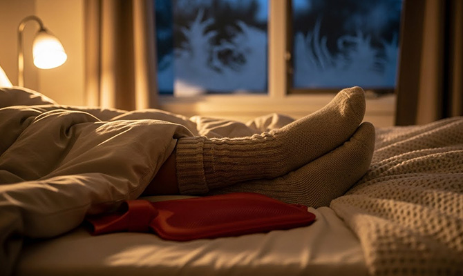 Iarna ne atacă somnul din cel puțin trei direcții simultan: frigul fizic, uscăciunea aerului și ritmul circadian care parcă intră